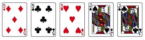 Full House (7:1) — 3+2 карты одного достоинства. К примеру: K, K, A, A, A.